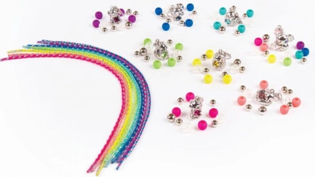 In elke set vind je: 1 Disney‑hanger met Swarovski‑kristal, 1 gevlochten koord in de kleur van het personage, 11 kralen, een afsluitbaar hartvormig doosje, een sleutel, een brochure van 40 pagina’s met personageprofielen en een handleiding. Personages in de collectie: Tinkelbel, draak Sisu, Belle, Cheshire Cat, Vaiana, Stitch, Minnie Mouse en Olaf. Verzamel ze alle 8 en combineer kleuren en stijlen.