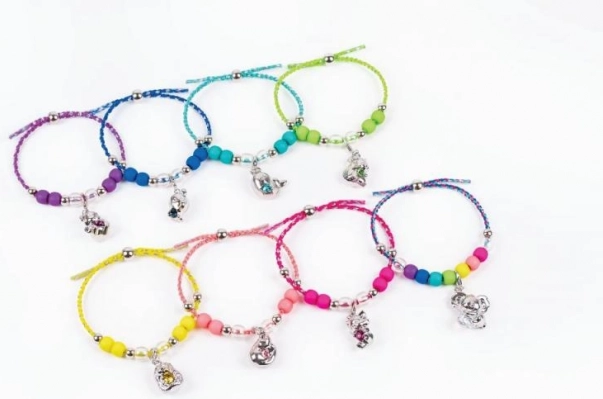 Bevat een gevlochten koord in de kleur van het personage en 11 kleurrijke kralen. Eenvoudig rijgen, comfortabel dragen en verstelbare maat voor kinderpolsen.