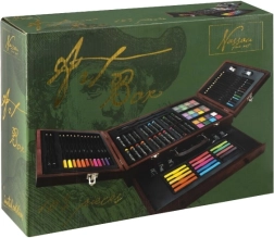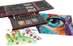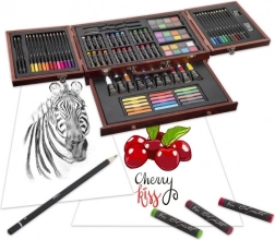 Deze rijk uitgeruste creatieve set van 103 stuks in een stevige houten koffer biedt alles wat je nodig hebt voor tekenen en schilderen. Dankzij de overzichtelijke vakken heb je alle hulpmiddelen altijd bij de hand en kun je je volledig concentreren op het creëren. Ideaal voor een thuisatelier, schoolprojecten en als geschenkset.