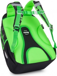 Anatomisch gevormde rug, gewatteerde en verstelbare banden en een borstriem ondersteunen een juiste lichaamshouding en stabiliteit tijdens het lopen. Twee zijvakken zijn ideaal voor een fles of kleine spullen, het voorvak met organizer en een houder voor sleutel/chip vergemakkelijkt het dagelijks naar school gaan. Uiteraard zijn er opvallende reflecterende elementen voor veiliger bewegen in schemering.