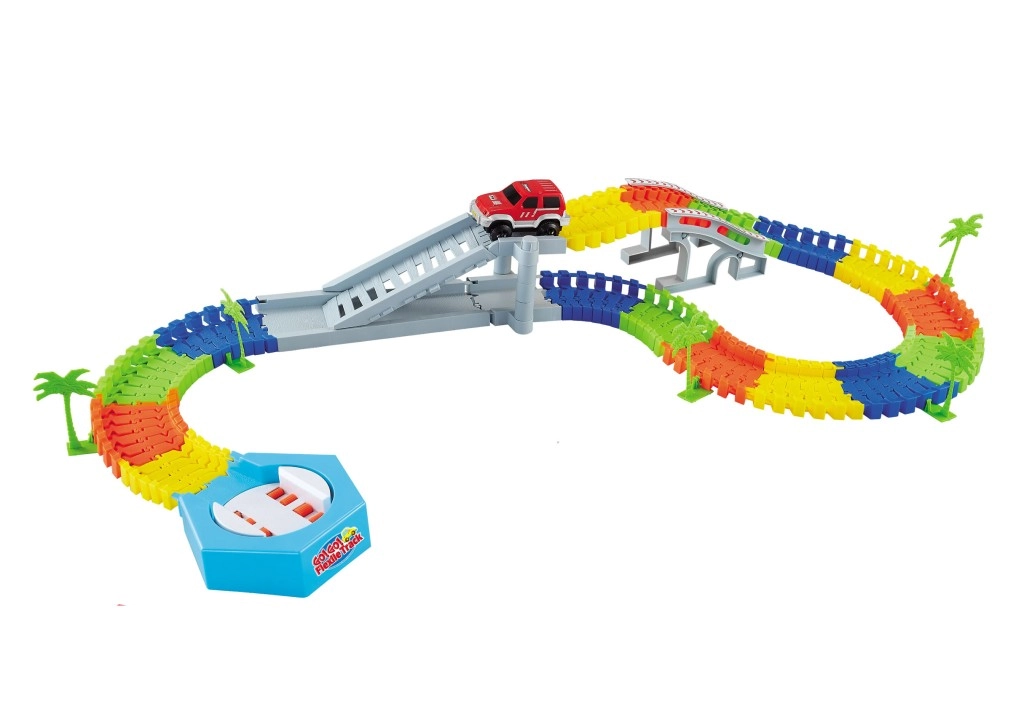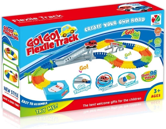 Bouw je eigen circuit met deze variabele racebaan van 96 delen en één autootje in de set. De baan is eenvoudig te monteren, het autootje wordt aangedreven door 2× AA-batterijen (niet inbegrepen). Railbreedte 7,8 cm voor stabiele ritten en creatieve pret.