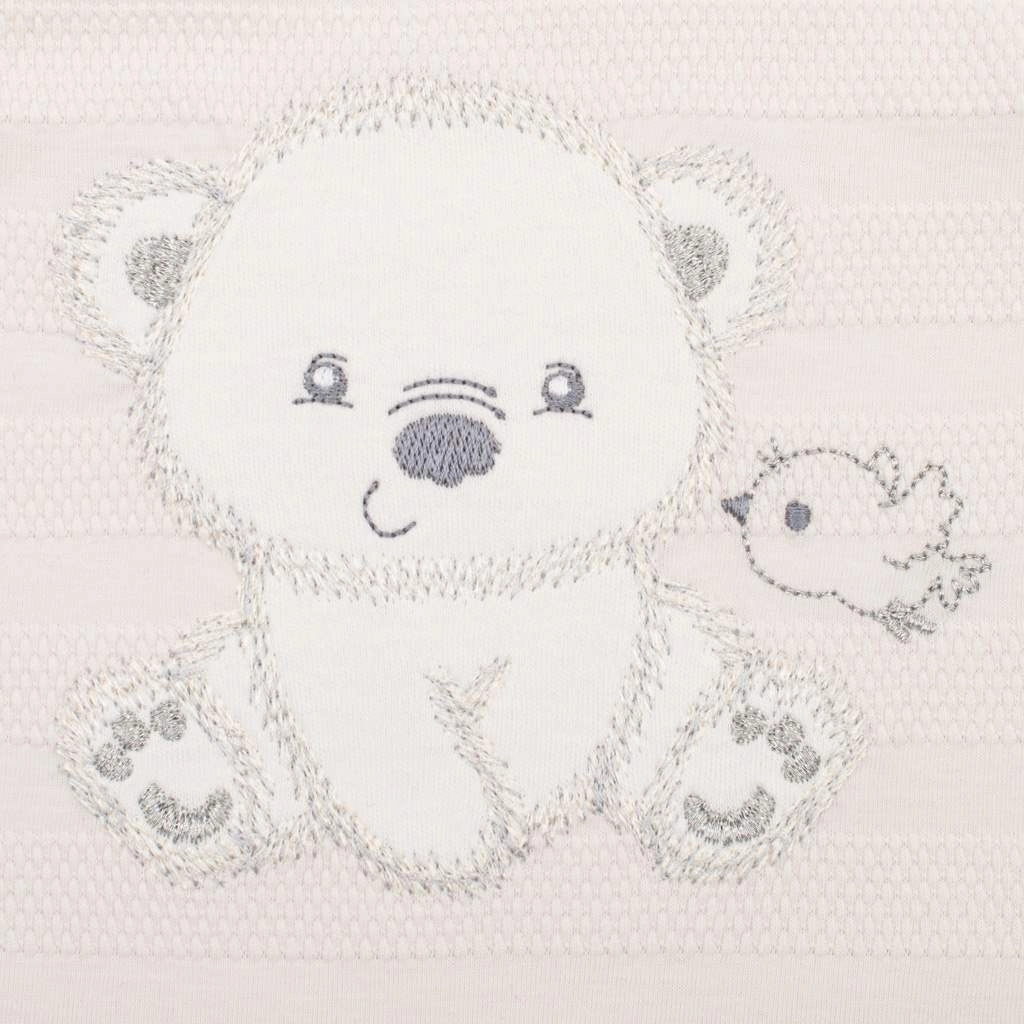• Unisex design: zacht beige met schattig beertje- en vogeltje-borduursel