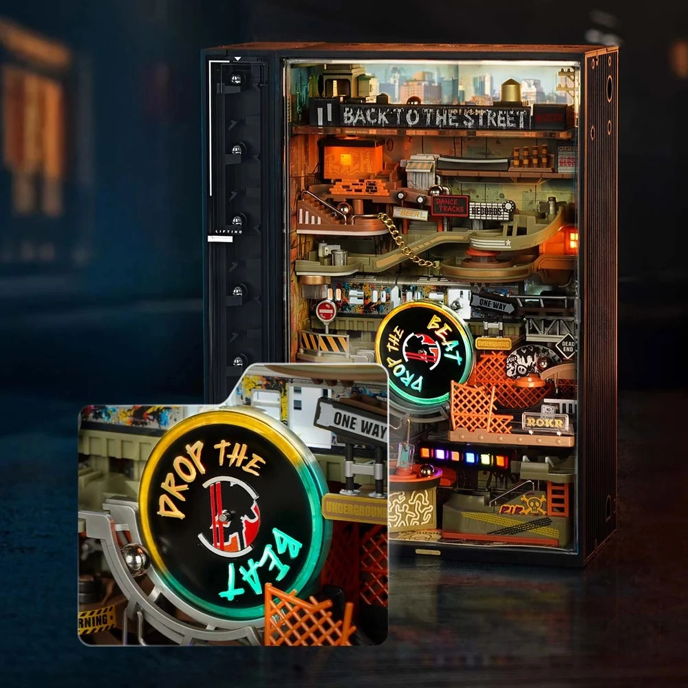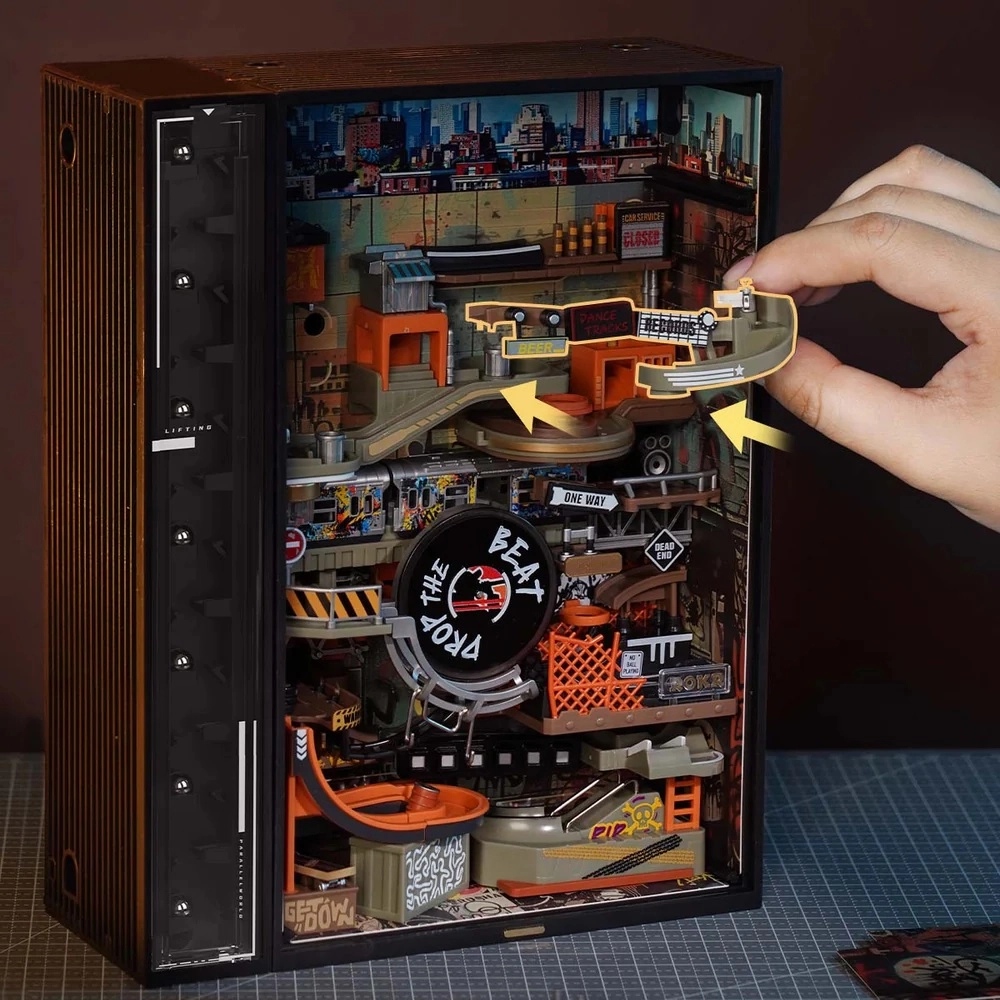 Een miniatuurpanorama van een pulserende hiphop-straat brengt vloeiende knikkerbewegingen over een baan van 233 cm, versterkt door dynamische neon-LED-verlichting. Dankzij de efficiënte motor met hoog koppel keren de knikkers betrouwbaar terug via de automatische lift, zodat je kunt genieten van een ononderbroken spektakel.