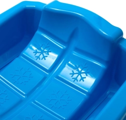 Lichte en duurzame kunststof slee Baby Mix Karol in blauwe kleur voor kinderen van 3 tot 7 jaar zorgt voor winterplezier en veiligheid. Dankzij geïntegreerde remmen heeft u betere stuurcontrole en kunt u veilig stoppen op de helling. De slee is gemaakt van vorstbestendig kunststof tot -20 °C, heeft een sterk trekkoord met handgreep en voldoet aan de certificeringen CE, EN 71-1/2/3.