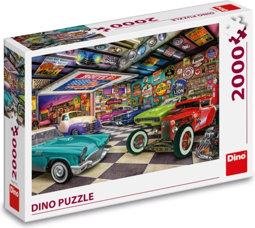 Deze hoogwaardige kartonnen puzzel van Dino toont een gedetailleerde scène uit een retrogarage, gedomineerd door klassieke wagens en authentieke reclameborden uit die tijd. Het hoge aantal stukjes garandeert een intensieve en meeslepende puzzelervaring, waarbij je concentratie, geduld en observatievermogen traint.