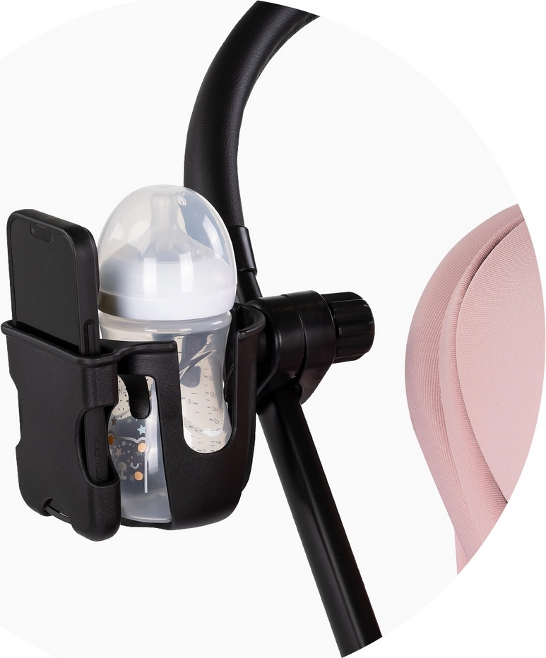 Praktisch accessoire voor kinderwagens, fietsen en stepjes dat een bekerhouder en telefoonhouder combineert in één. Dankzij de 360° draaimechaniek, sterke antislipklem en montage zonder gereedschap heb je alles veilig en stabiel bij de hand, zelfs op oneffen terrein.