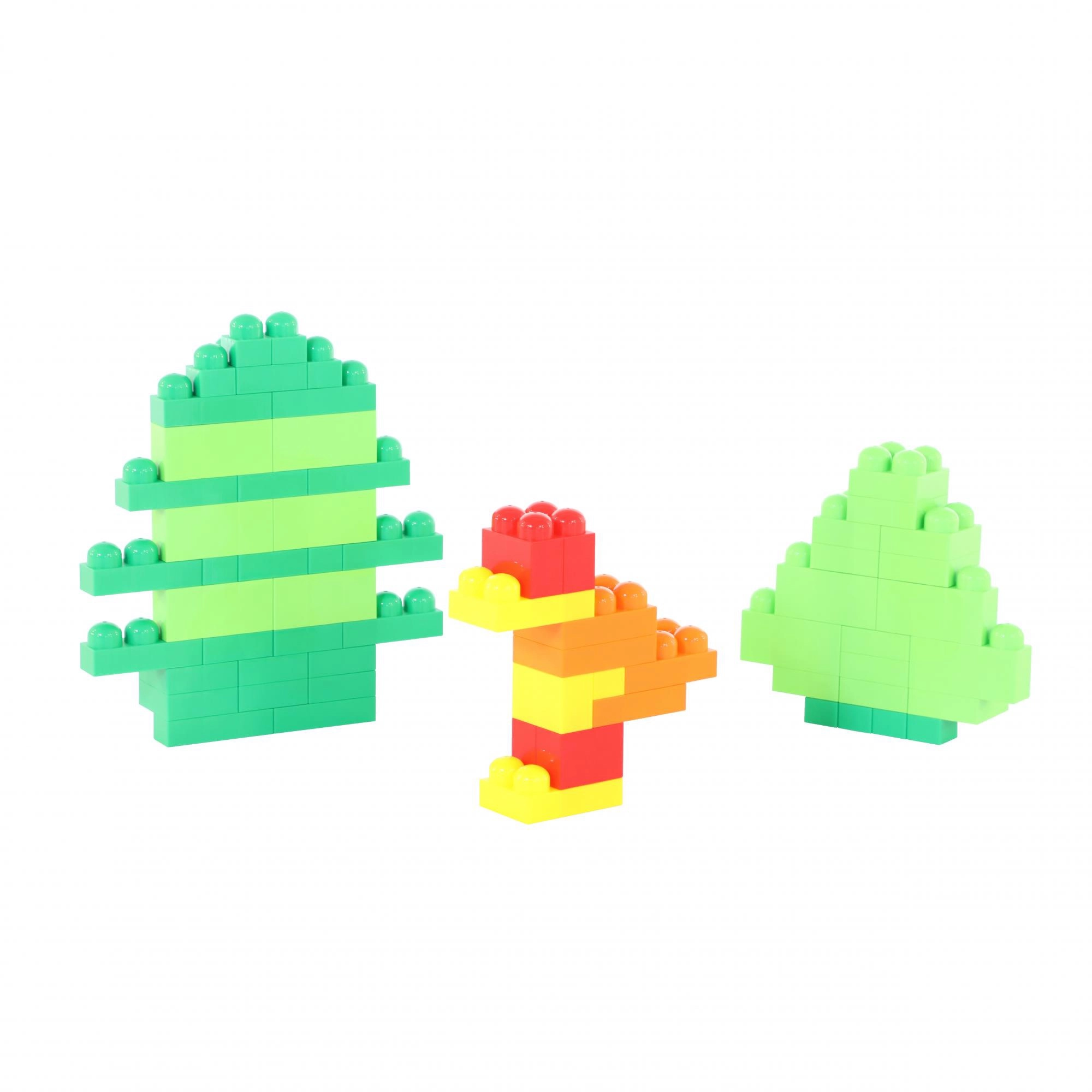 Met de helder gekleurde blokken bouwen kinderen eenvoudig simpele modellen – boompjes en schattige figuurtjes. Stimuleert verbeelding en rollenspel.