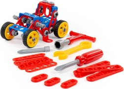 Ontdek een leuke bouwset met 87 onderdelen, waarmee je een quad en andere creatieve voertuigen met rubberen wielen bouwt. De onderdelen worden verbonden met bouten en moeren met het meegeleverde kindergereedschap, wat de fijne motoriek en basis technische vaardigheden ontwikkelt bij kinderen vanaf 3 jaar.