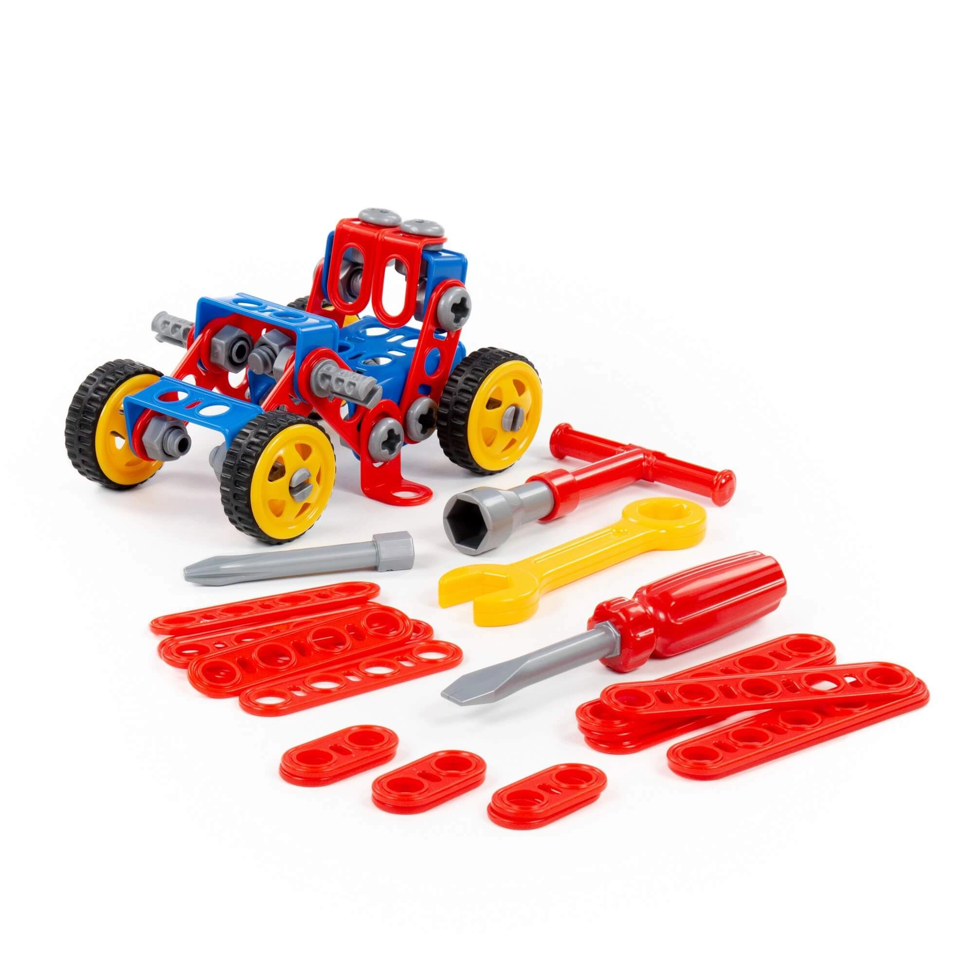 De set bevat praktisch kindergereedschap – een schroevendraaier, een steeksleutel en andere accessoires – waarmee kinderen leren bouten en moeren correct vast te draaien. Spelenderwijs ontwikkelen ze logisch denken, ruimtelijk inzicht en geduld, en wordt creativiteit gestimuleerd bij het bouwen van verschillende voertuigen.
