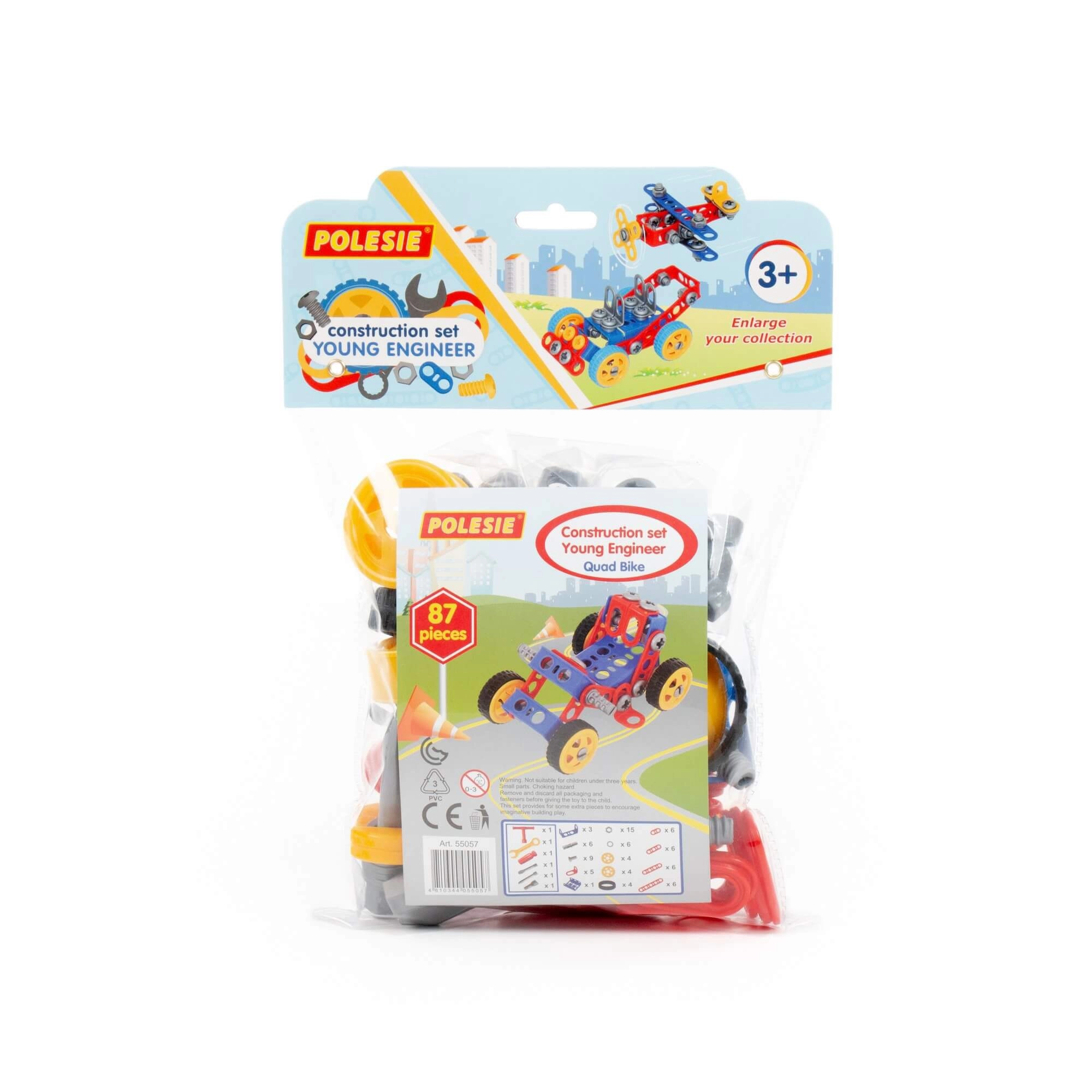 Bouwset Kleine Ingenieur 87 is een kleurrijke constructieset waarmee kinderen een quad en andere modellen naar eigen fantasie bouwen. Wielen met rubberen banden met een diameter van ongeveer 5,5 cm zorgen voor soepele beweging en rijplezier. De onderdelen hebben afgeronde randen en kunnen gemakkelijk worden verbonden en telkens weer uit elkaar gehaald.