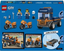 Ontdek de actiebouwset voor kleine racetalenten: de LEGO City motortransporttruck biedt een vlakke laadruimte met oprijplaat, 2 sportmotoren, 2 coureur-minifiguren met helmen en stevige rubberen banden voor stabiel rijden. Ideaal voor kinderen vanaf 4 jaar dankzij de startsteen en de eenvoudige handleiding.