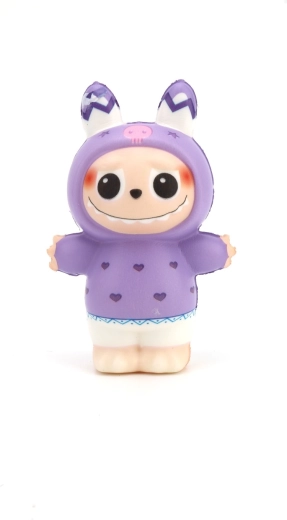 Verwen jezelf met een antistressfiguurtje dat fun, design en praktisch gebruik combineert. De knijpbare pop met rond gezicht, grote ogen en brede glimlach draagt een gestileerde onesie met capuchon, versierd met oortjes, hartjes, strikjes of sterretjes. Het aangename, fluweelzachte oppervlak wordt geliefd bij zowel kinderen als volwassenen.