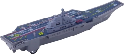 Ontdek een realistisch speelgoed voor kleine zeelieden: een militair vliegdekschip met lichteffecten en geluidseffecten en frictie-aandrijving. De compacte lengte van 24 cm, de gedetailleerde dekbedrukking en de duurzame uitvoering van hoogwaardige kunststof garanderen creatief spel en een geweldige aanvulling op een kinderspeelgoedcollectie.