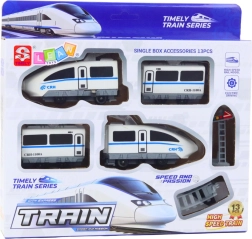 Leuke set voor kleine treinliefhebbers: elektrische hogesnelheidstrein CITY EXPRESS met rails en accessoires. Biedt een realistisch design, eenvoudige montage en veilige materialen. De locomotief werkt op een AA-batterij en rijdt na inschakelen over het spoor, dat vrij te configureren is met rechte en gebogen stukken. Een geweldig cadeau en ideaal voor samen spelen van ouders en kinderen.