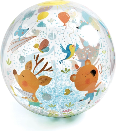 De opblaasbare bal met balletjes van DJeco zorgt voor veel beweging en plezier. De transparante buitenkant verbergt kleine balletjes die bij het gooien en rollen een speels effect geven en kinderen aanzetten tot actief bewegen.