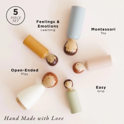 De set van vijf figuurtjes is compatibel met poppenhuizen en andere accessoires, waardoor je hem eenvoudig integreert in een grotere speelwereld. Het is een duurzaam, stijlvol en milieuvriendelijk speelgoed dat fijne motoriek, sociale interactie en communicatie bevordert.
