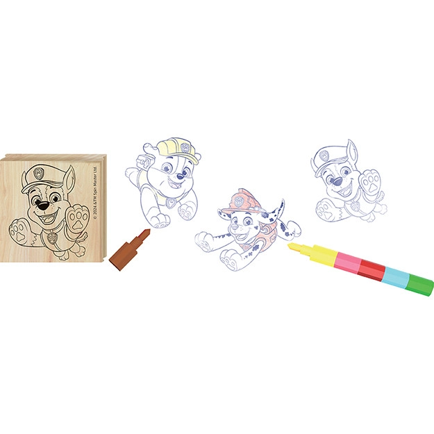 Met deze creatieve set met de geliefde held Chase van PAW Patrol beleven kinderen uren knutselplezier. De houten stempels liggen goed in kleine handjes en het gekleurde kussen zorgt voor duidelijke en schone afdrukken. De meegeleverde zeskleurige waskrijt maakt eenvoudig inkleuren en afwerken van de afbeeldingen mogelijk.