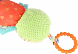 Het speeltje is licht, aangenaam om aan te raken en ideaal voor thuis spelen, in het wiegje en voor tummy time. Dankzij het siliconen bijtspeeltje biedt het verlichting aan het tandvlees, terwijl de segmentconstructie de oog-handcoördinatie ondersteunt en het grijpen verbetert.