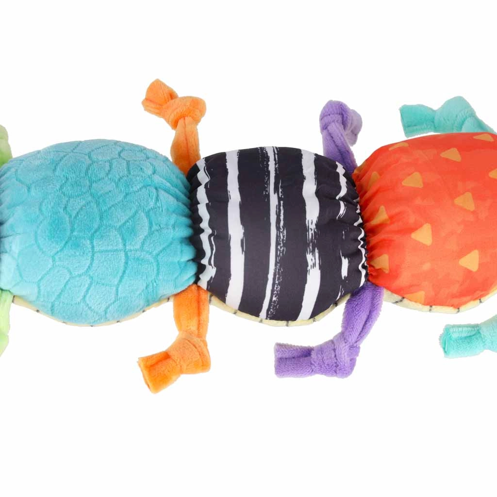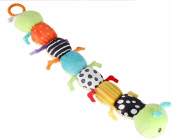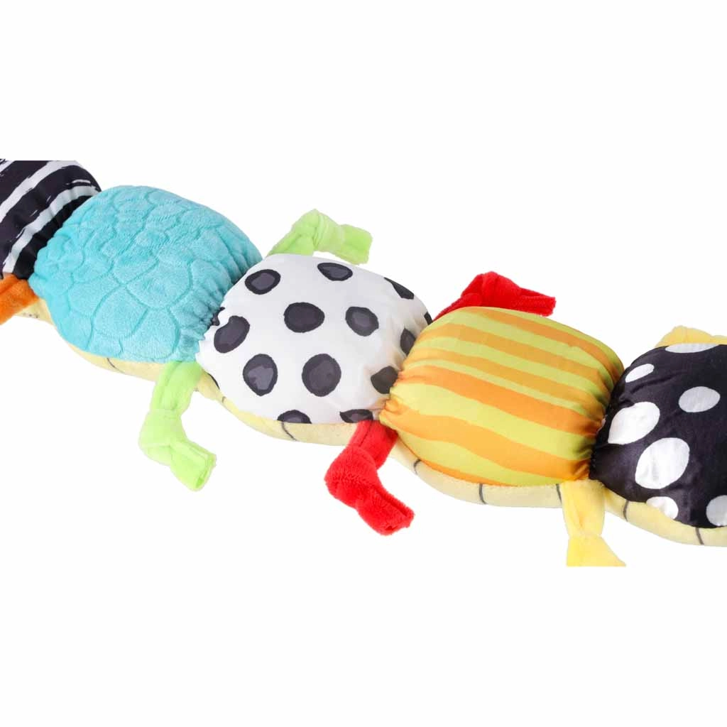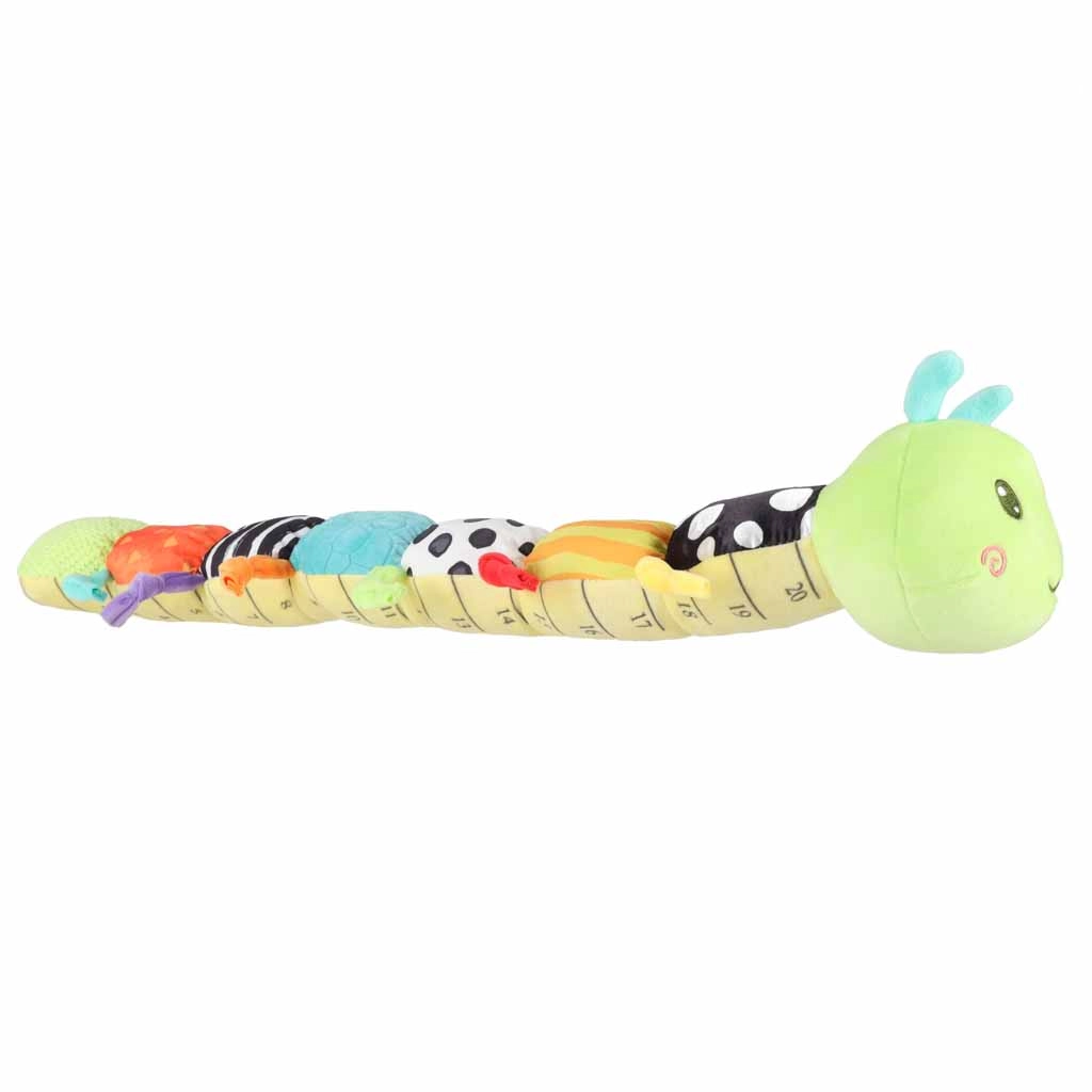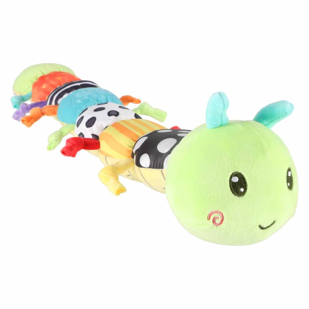 Na het indrukken van de knop in de kop speelt de rups een melodie af die de aandacht trekt en je baby helpt te kalmeren.