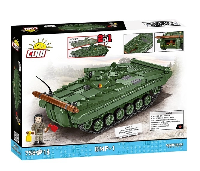 Bouw de BMP-1 in Sovjet- of Oost-Duitse markering en bouw hem op elk moment om naar de andere versie. Ideaal voor verzamelaars en vertellers van historische verhalen.