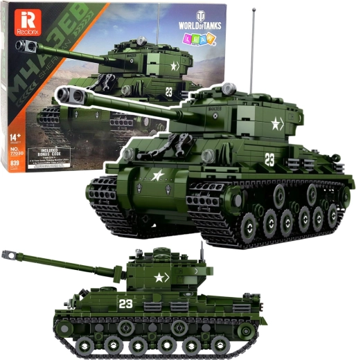 Bouw de iconische tank SHERMAN M4A3E8 van 839 stenen op realistische schaal 1:30. De gedetailleerde koepel, werkende rupsbanden en robuuste silhouette zullen zowel militariafans als modelbouwers bekoren. Duurzame kunststof onderdelen garanderen een lange levensduur en leuk, leerzaam bouwen én een aantrekkelijke decoratieve display.