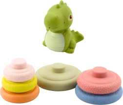 De kleurrijke sensorische piramide met een schattige dinosaurus is ideaal voor kinderen vanaf 6 maanden. Bevat verschillende texturen voor zintuiglijke stimulatie, zachte veilige elementen en bevordert fijne motoriek, oog-handcoördinatie en logisch denken. De dinosaurus bovenop geeft bij indrukken een piepgeluid dat uitnodigt tot interactie.