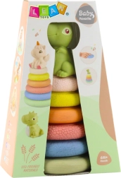 Deze zachte rubberen piramide van ecologische materialen biedt kinderen een rijke zintuiglijke ervaring. Zes kleurrijke ringen met verschillende texturen en oppervlakken helpen de tastzin, concentratie en nieuwsgierigheid te ontwikkelen. Het stapelen van de ringen op de staaf ondersteunt de ontwikkeling van de fijne motoriek en de coördinatie van bewegingen.