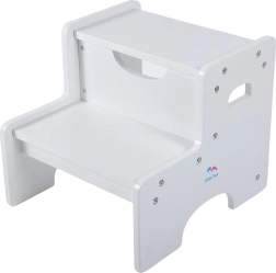 De tweestapskruk 2Kids Toys is een geweldige hulp voor kleine ontdekkers. Hij laat kinderen veilig bij de wastafel, het werkblad of een plank komen en moedigt meer zelfstandigheid aan. De stabiele houten constructie met een draagvermogen tot 70 kg zorgt voor veilig dagelijks gebruik, terwijl het praktische handvat het verplaatsen vergemakkelijkt. Het eenvoudige witte design past in ieder interieur.