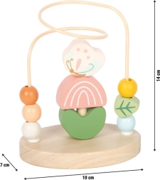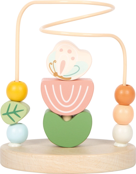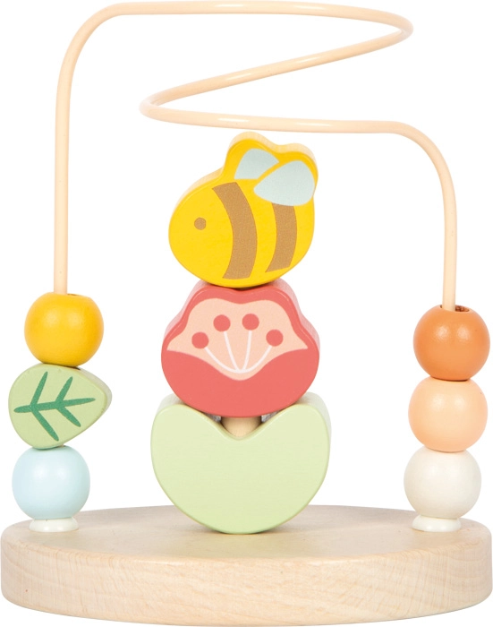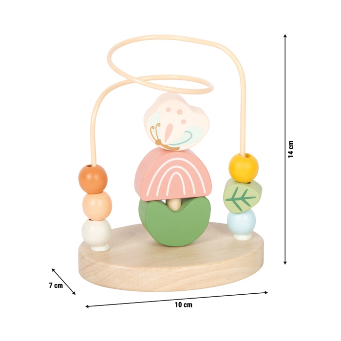 Het motorische doolhof Weide van small foot brengt kinderen plezier in ontdekken en leren. De stevige metalen lus met kleurrijke houten kralen maakt soepel schuiven mogelijk, wat op natuurlijke wijze de fijne motoriek en een precieze greep ondersteunt. In het midden zit een vouw-minispel met zes houten stukjes (bij, vlinder, 2 bloemblaadjes, 2 blaadjes), dat concentratie en logisch denken bevordert.