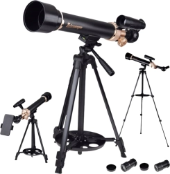 Deze refractortelescoop combineert een duurzame aluminium constructie met soepele scherpstelling en hellingsregeling voor comfortabel en nauwkeurig observeren. Dankzij het in hoogte verstelbare statief (tot 1,35 m) is hij geschikt voor jonge enthousiastelingen en volwassenen, zowel voor nachtelijke astronomie als voor dagobservatie van landschap en natuur.