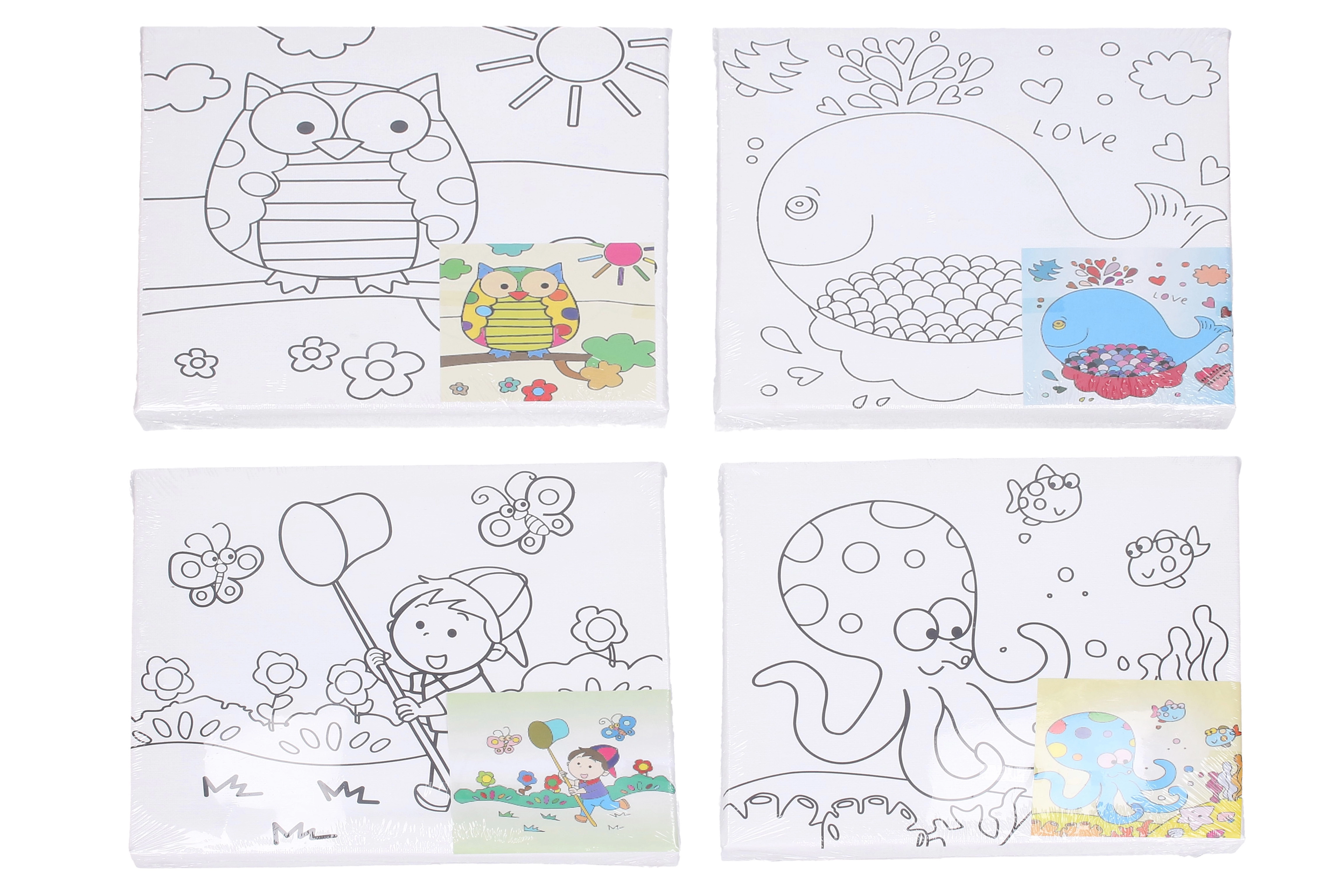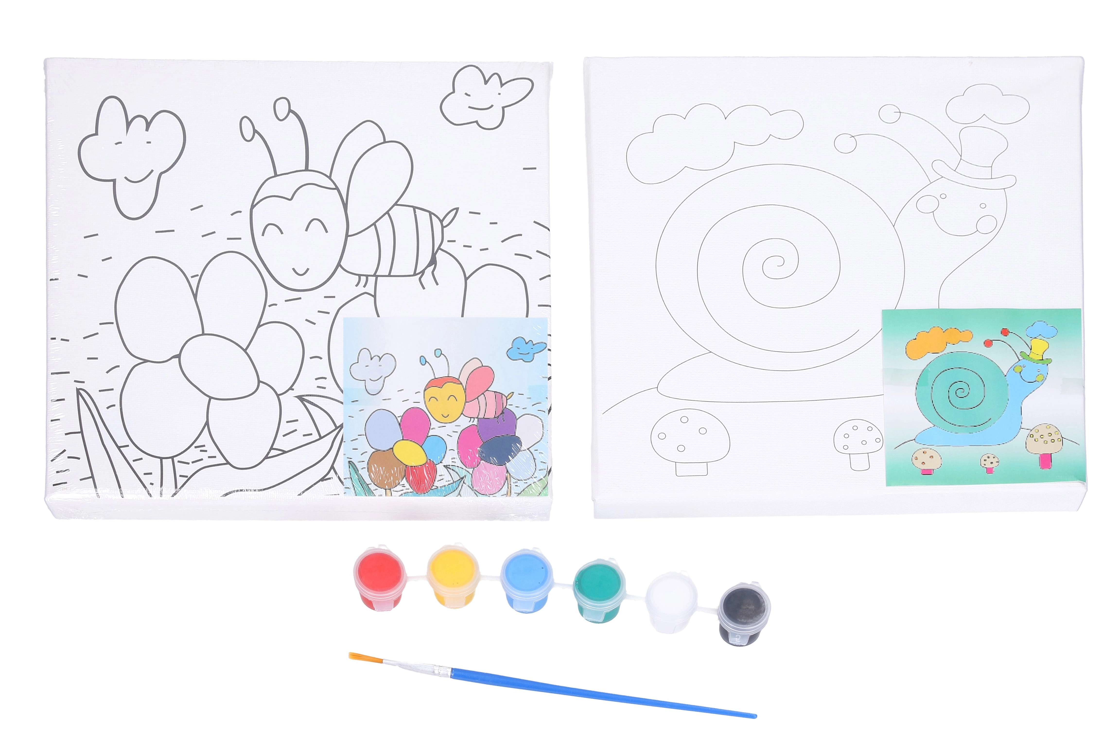 Deze kinderschilderset bevat alles wat kleine kunstenaars nodig hebben: canvassen met voorbedrukte motieven, een set basisacrylverven en een kwaliteitskwast. Voorbeelden met duidelijke contouren maken het schilderen makkelijker, bouwen zelfvertrouwen op en motiveren kinderen om hun eigen kleurrijke werk af te maken.