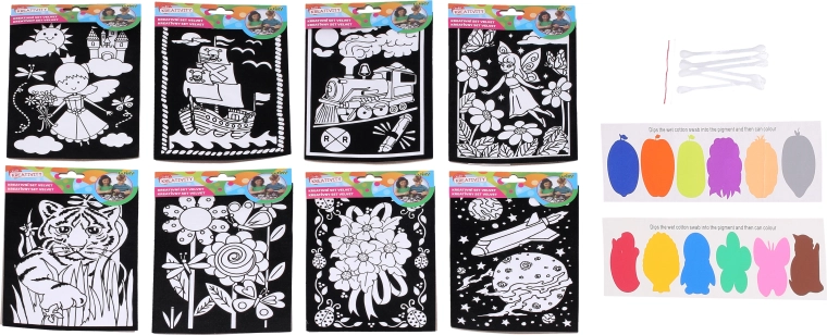 Ontdek de leuke creatieve fluwelen set in het formaat 15,5 × 25 cm met verf en 6 stokjes voor eenvoudig knutselen. Ideaal voor kinderen en beginners – het fluwelen oppervlak maakt inkleuren makkelijker, de verf loopt niet over de randen en het resultaat oogt professioneel.
