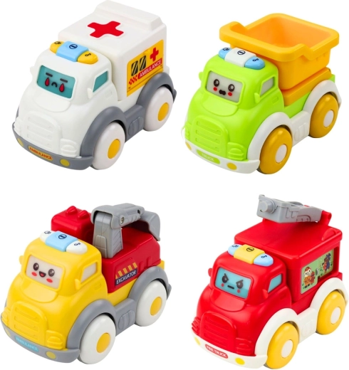 Ontdek de leuke set voor de allerkleinsten: vier kleurrijke stadsautootjes die gemakkelijk vast te houden zijn voor kinderhandjes, met mechanische push-and-go aandrijving, lichten en geluiden en bewegende onderdelen. Veilig, duurzaam en ideaal voor de ontwikkeling van fijne motoriek, coördinatie en fantasie.