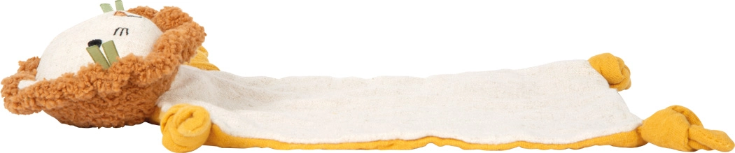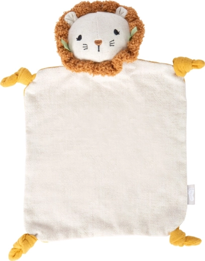Dit superzachte knuffeldoekje van aangename mousselinestof combineert een troostdekentje, slaapknuffel en sensorisch speeltje in één. De pluche leeuwenkop met geborduurde details oogt vriendelijk en veilig, terwijl het getextureerde oppervlak de natuurlijke nieuwsgierigheid en tastzin stimuleert.