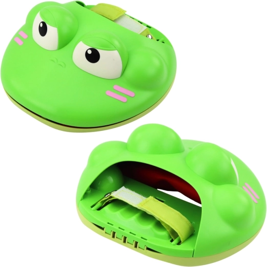 Een leuk kikker–spel voor actieve kinderen dat beweging en samenwerking stimuleert. Twee handmatige “kikkertjes” met verstelbare klittenbandriemen laten je balletjes vangen en afschieten, en trainen coördinatie, reactiesnelheid en nauwkeurigheid, zowel binnen als buiten. Ideaal voor spelen met z’n tweeën of in een groep.