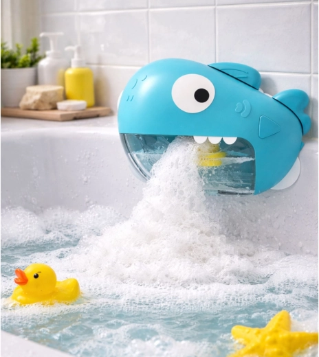 Met eenvoudige éénknopsbediening start je een mechanisme dat veel schuim recht uit de haaienbek laat komen – gegarandeerd plezier en motivatie om te badderen.