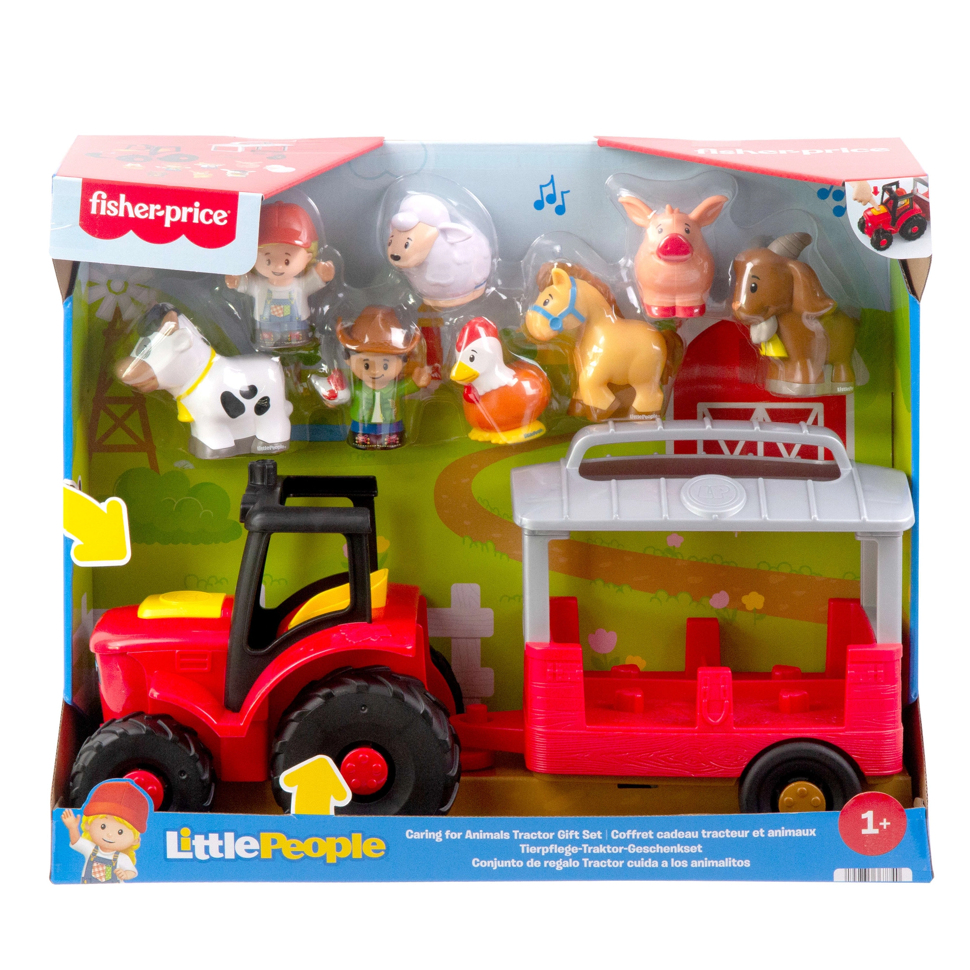 De set bevat 2 boerenfiguren en 6 dieren (biggetje, schaapje, paardje, koetje, kipje en geitje). De aanhanger biedt plaats aan tot 4 figuren en is gemakkelijk los te koppelen, zodat kinderen eenvoudig scènes kunnen wisselen, dieren kunnen vervoeren en hun eigen verhaaltjes kunnen maken. Alle onderdelen hebben het ideale formaat voor kleine kinderhanden en zijn ontworpen voor veilig spelen vanaf de eerste stapjes.