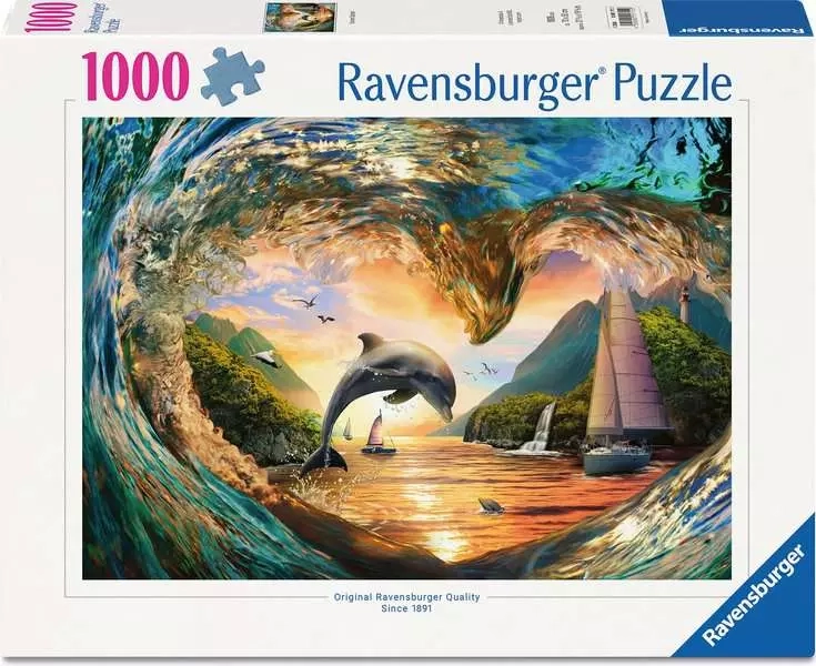 Ontdek de magie van ontspanning met de hoogwaardige RAVENSBURGER-puzzel. Deze hartvormige afbeelding van zeegolven biedt 1000 stukjes, nauwkeurige uitsparingen en premium kwaliteit voor zorgeloos leggen. Het voltooide werk meet ca. 70 × 50 cm en is perfect om in te lijsten.