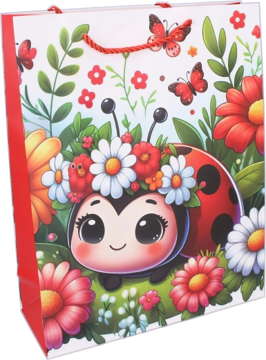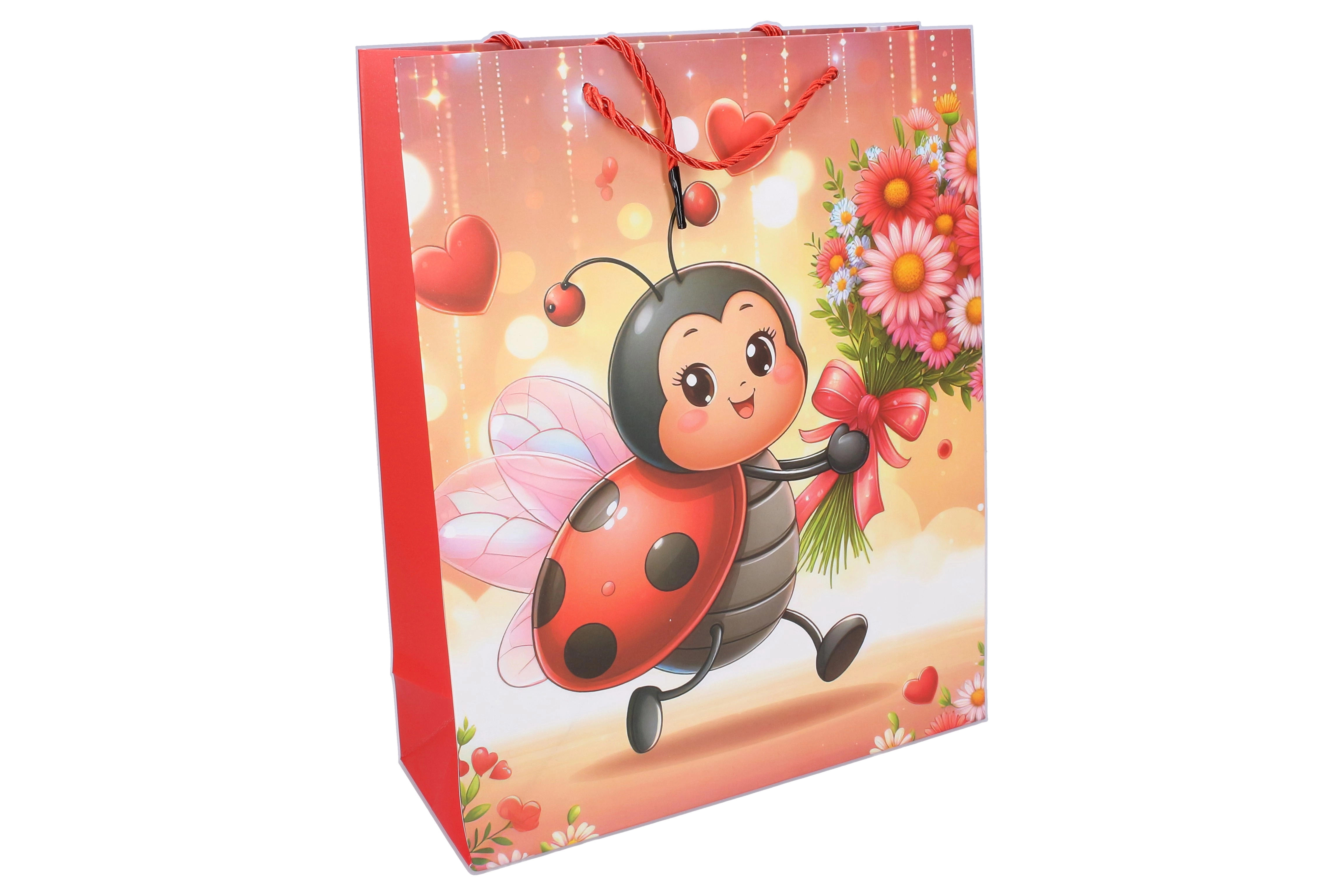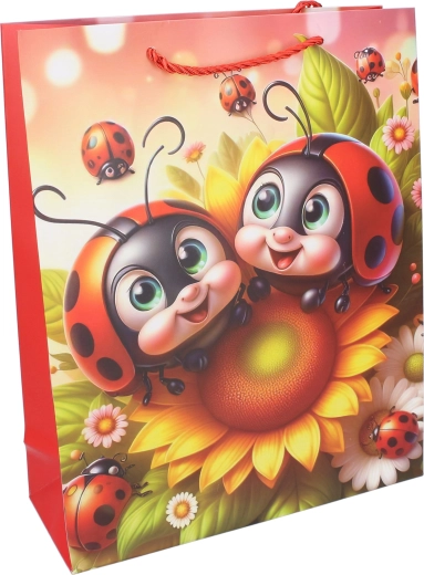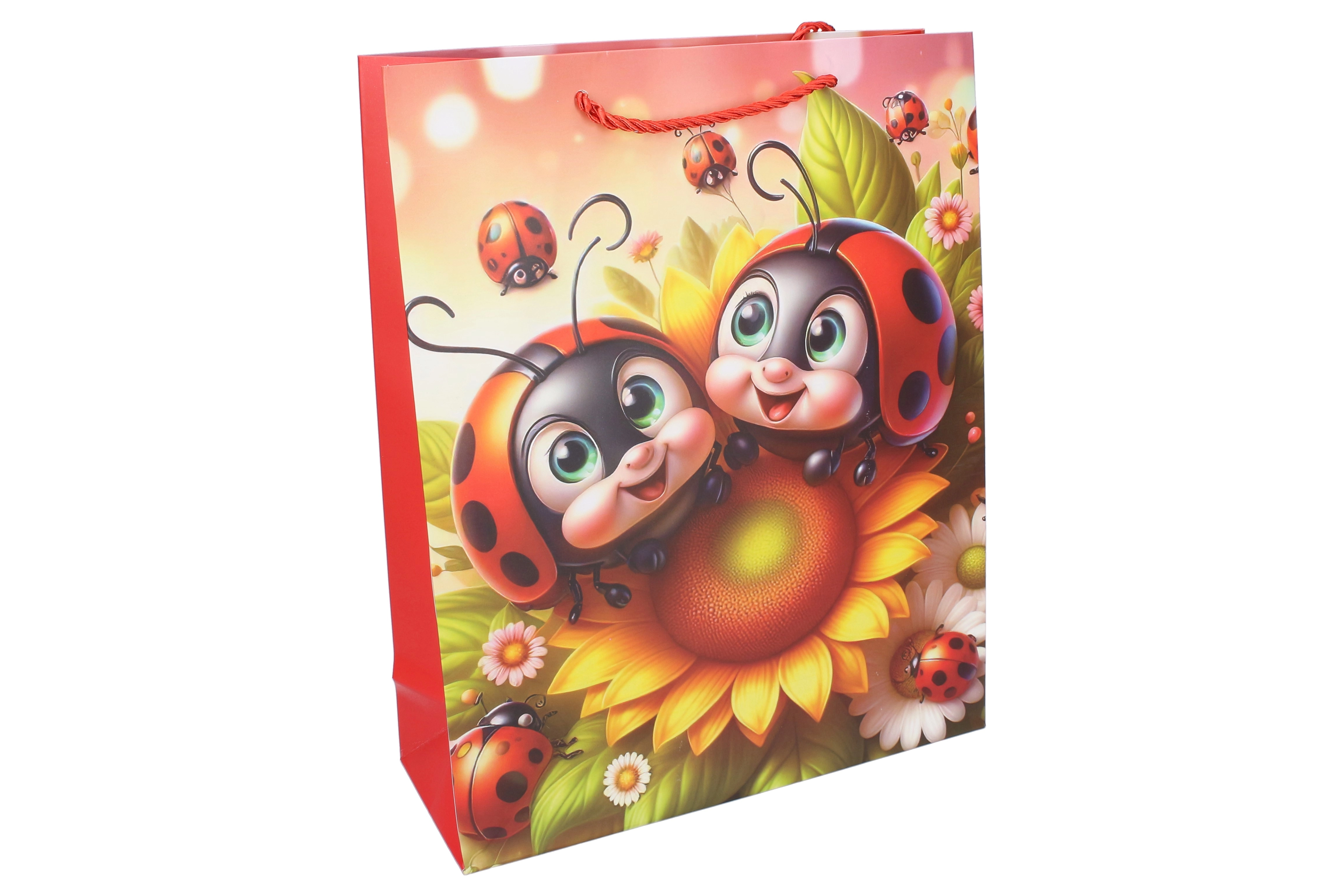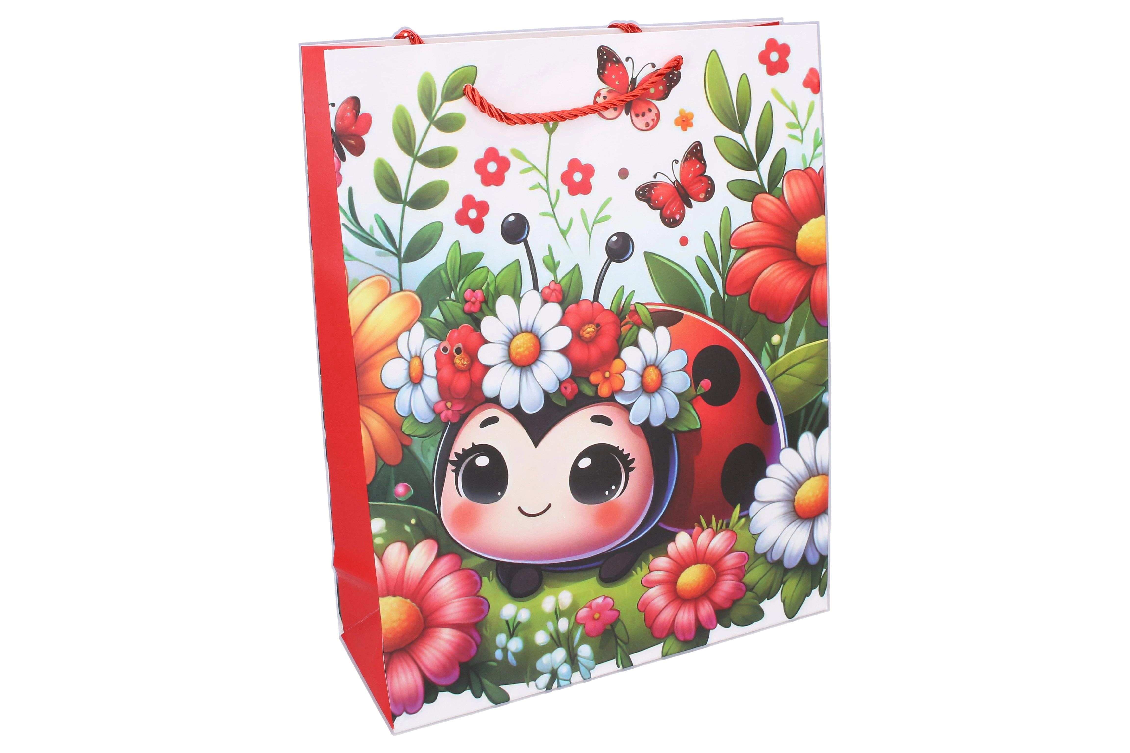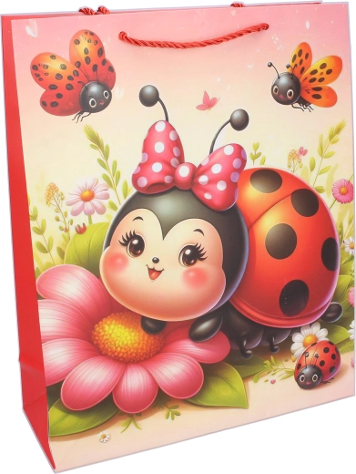 Schattige cadeautas in compact formaat S (18 × 24 × 8,5 cm) met een kindermotief van een lieveheersbeestje, leuk voor jong en oud. Ideaal voor kleinere cadeaus, speelgoed of kleinigheden. Beschikbaar in 4 aantrekkelijke varianten, stevig, praktisch en dankzij de kleurrijke bedrukking al een feest bij het overhandigen.