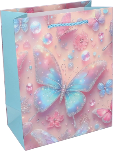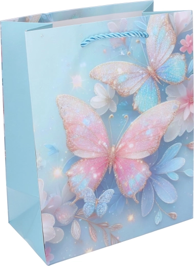 Deze cadeautas met een betoverend vlindermotief verandert elk cadeau in een indrukwekkende verrassing. Uitgerust met stevige koordhandvatten, verstevigde randen en kwaliteitspapier voor zowel betrouwbaar dragen als een mooie presentatie.