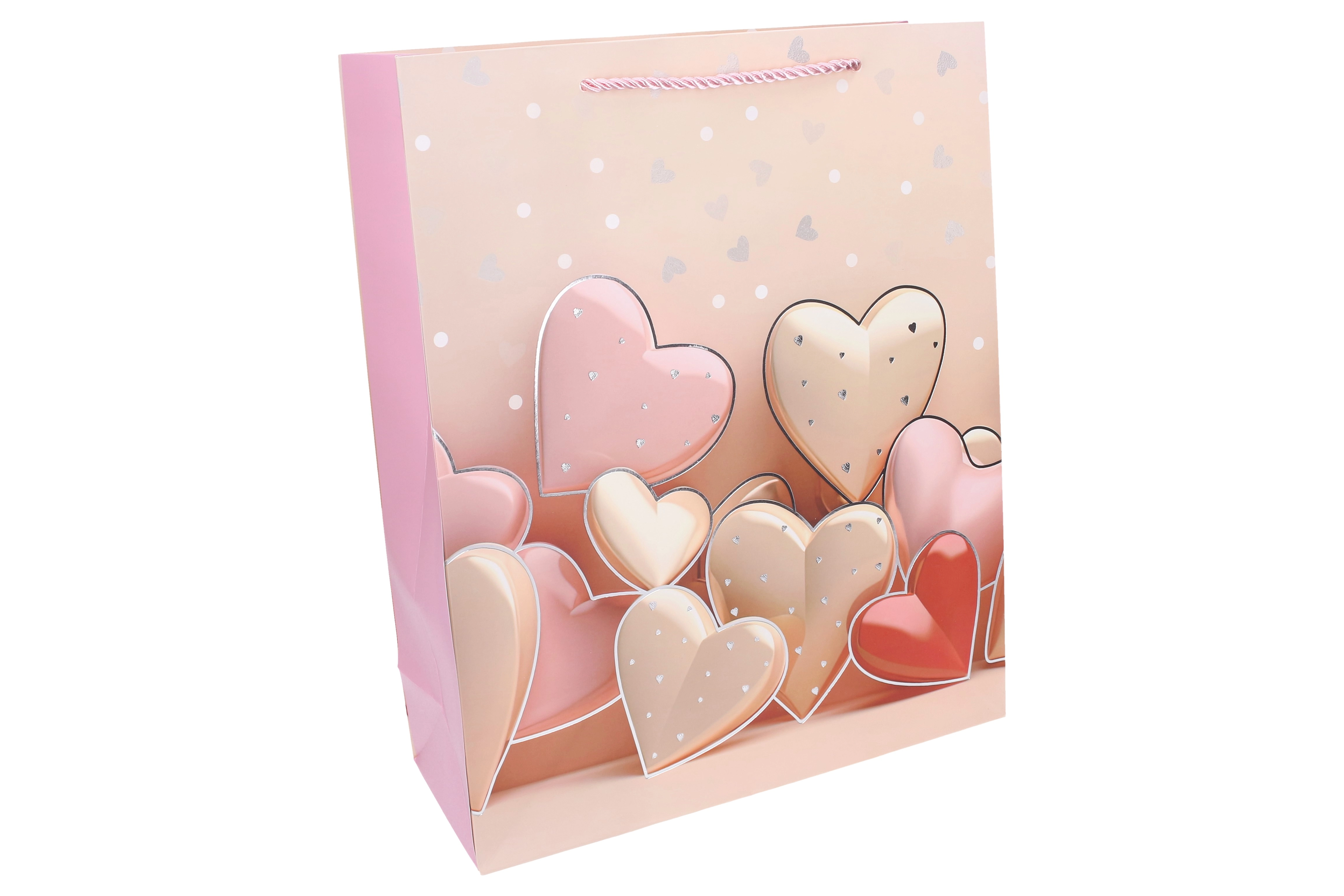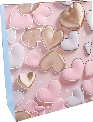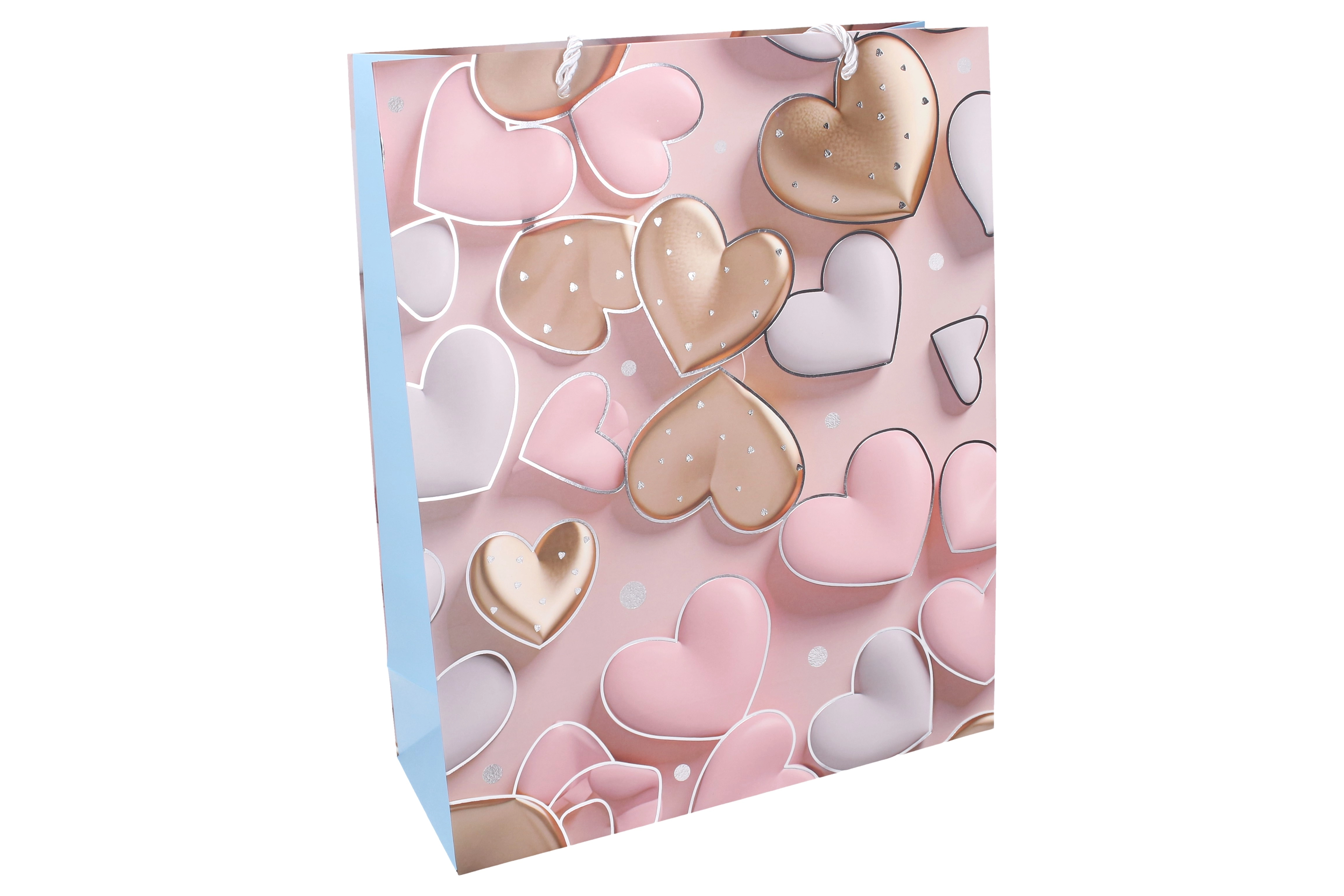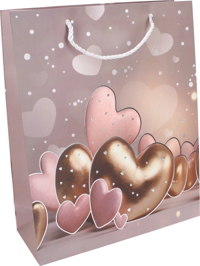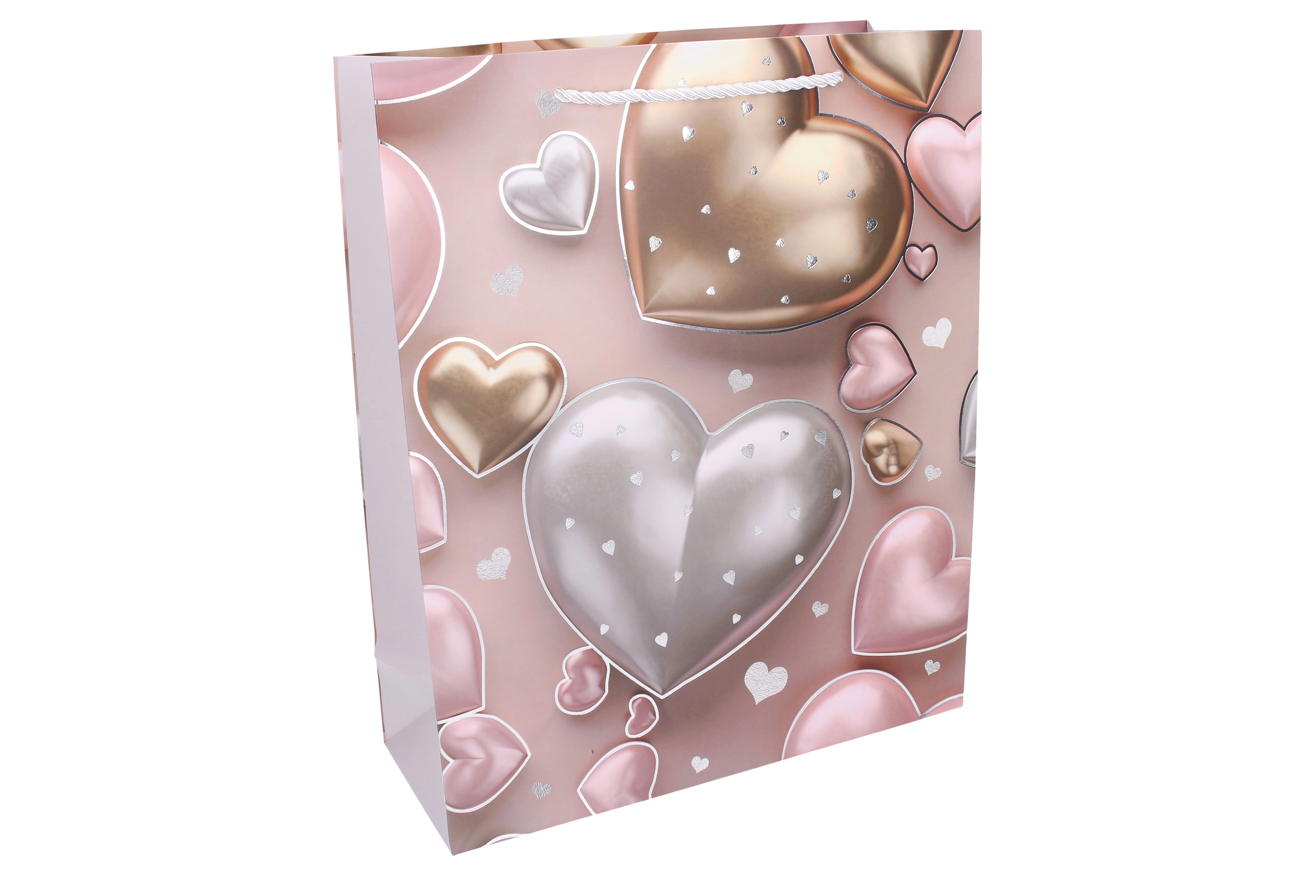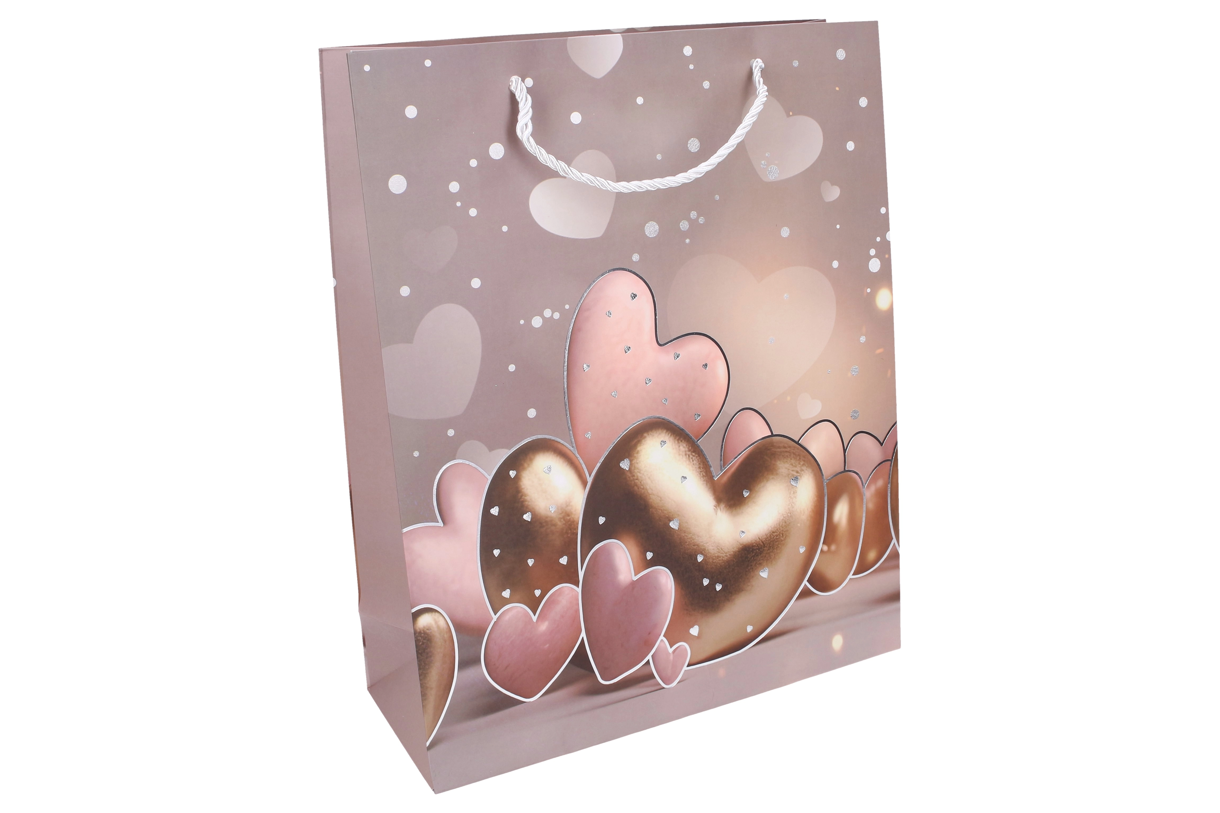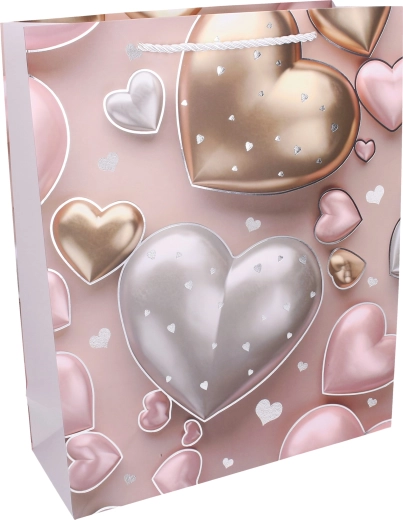Stijlvolle cadeautas in maat L met afmetingen 30 × 41,5 × 12 cm, ideaal voor het verpakken van cadeaus voor elke gelegenheid. Biedt een jaarrond hartmotief, een stevige uitvoering en vier kleurvarianten om te matchen met je cadeau.