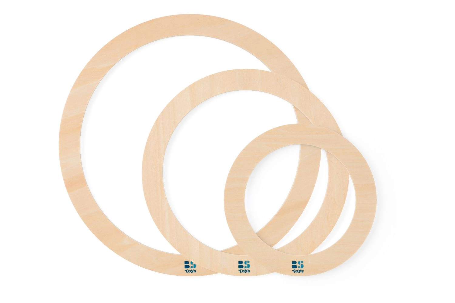 Glad afgewerkte ringen met verschillende diameters zijn duurzaam en gemaakt van hout uit verantwoord beheerde bossen.