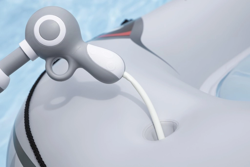 Het geïntegreerde waterpistool met slang laat kinderen water spuiten rechtstreeks vanaf het vaartuig – veilig, eenvoudig en leuk.