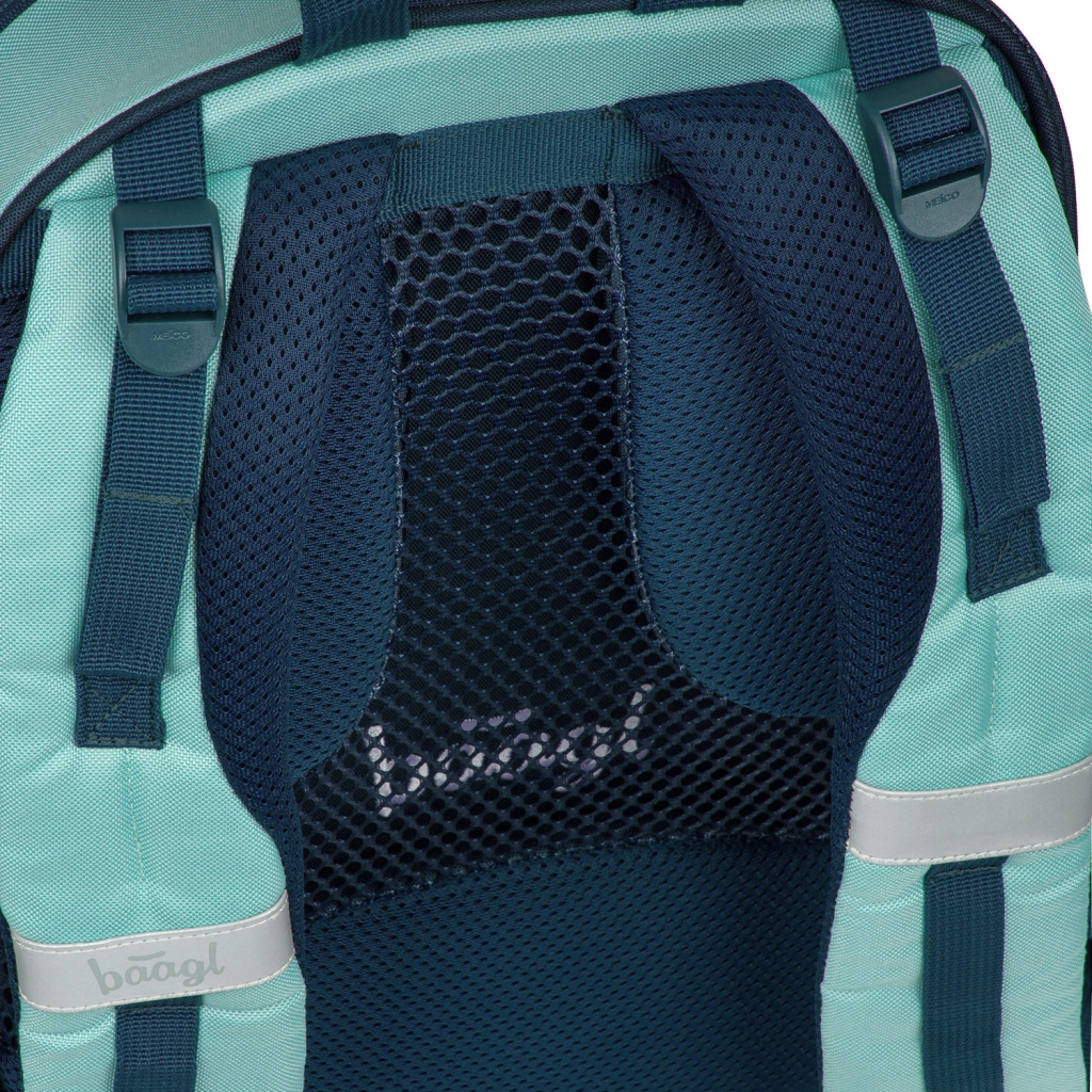 BAAGL Skate Petrol GRS combineert modern design, ergonomie en duurzame productie. Anatomisch gevormde rug met lendensteun en ademende padding zorgen voor comfort de hele dag. Dankzij volledig verstelbare compressieriemen past de rugzak zich uitstekend aan het lichaam aan en houdt hij de inhoud stabiel op zijn plaats.