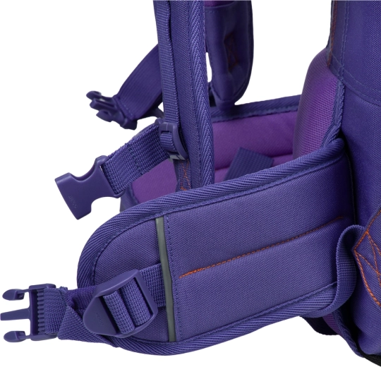 Gewatteerde rug met ventilatiezones, in hoogte verstelbaar rugsysteem, borst- en heupgordel. Stabiliteit, minder belasting en een juiste lichaamshouding elke dag.
