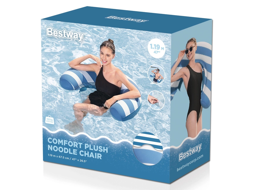 Opblaasbare waterstoel BESTWAY Comfort Plush met een ademende mesh zitting biedt luxe comfort en stabiliteit op het water. Het innovatieve Comfort Plush-materiaal is fluweelzacht aanvoelend en biedt een kleurenverandering bij contact met water. De lichte tweekamerconstructie met een draagvermogen tot 100 kg is ideaal voor bij het zwembad, op het strand en bij het meer.