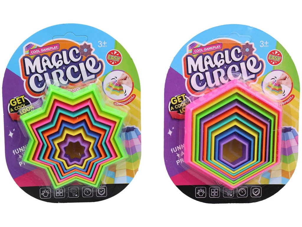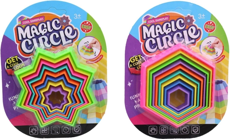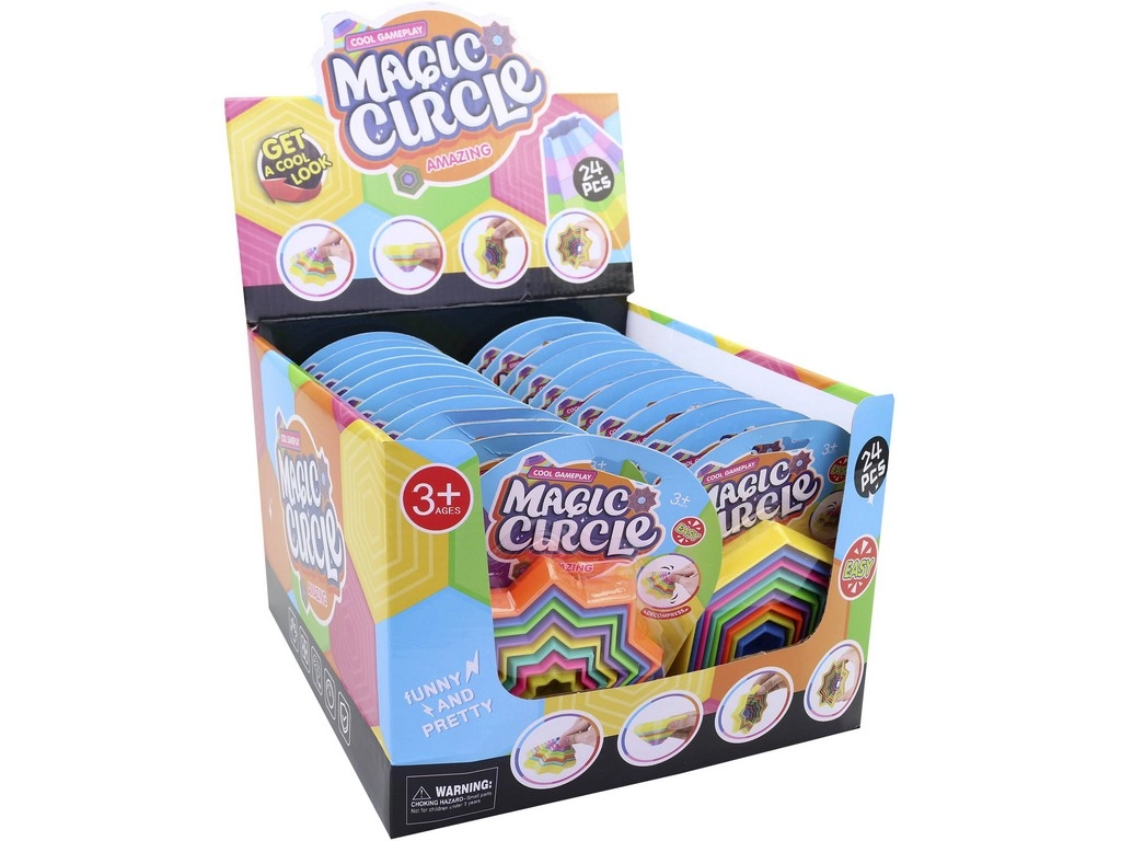 Ontdek de leuke en ontspannende magische cirkel, die de fijne motoriek en bewegingscoördinatie ontwikkelt. Licht plastic ontwerp, geschikt voor kinderen vanaf 3 jaar, ideaal als antistresshulpmiddel en als leuk reispeeltje.