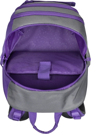 Drie afzonderlijk afsluitbare vakken zorgen voor een overzichtelijke opslag van schoolspullen. De interne organizer en het gevoerde vak voor een 15″ laptop of tablet beschermen elektronica, de zijvakken bieden plaats aan een drinkfles. Voorste compressie-/bevestigingsriemen zetten veilig een skateboard of sweatshirt vast.