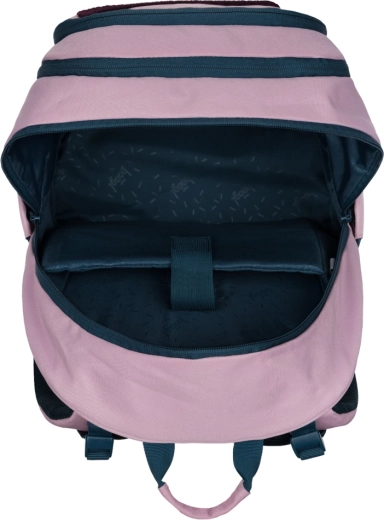 De set Skate Rose is ontworpen voor comfortabel dragen en slimme organisatie van school- en vrijetijdsspullen. De rugzak met een gewicht tot 900 g heeft anatomisch gevormde rug, lendensteun, drie compartimenten met organizer en een gevoerd vak voor een 15" laptop. Verder met zijvakken voor een fles, compressieriemen en riemen voor het bevestigen van een skateboard. Het gerecyclede, waterafstotende materiaal wordt aangevuld met reflecterende elementen en betrouwbare YKK-ritsen.