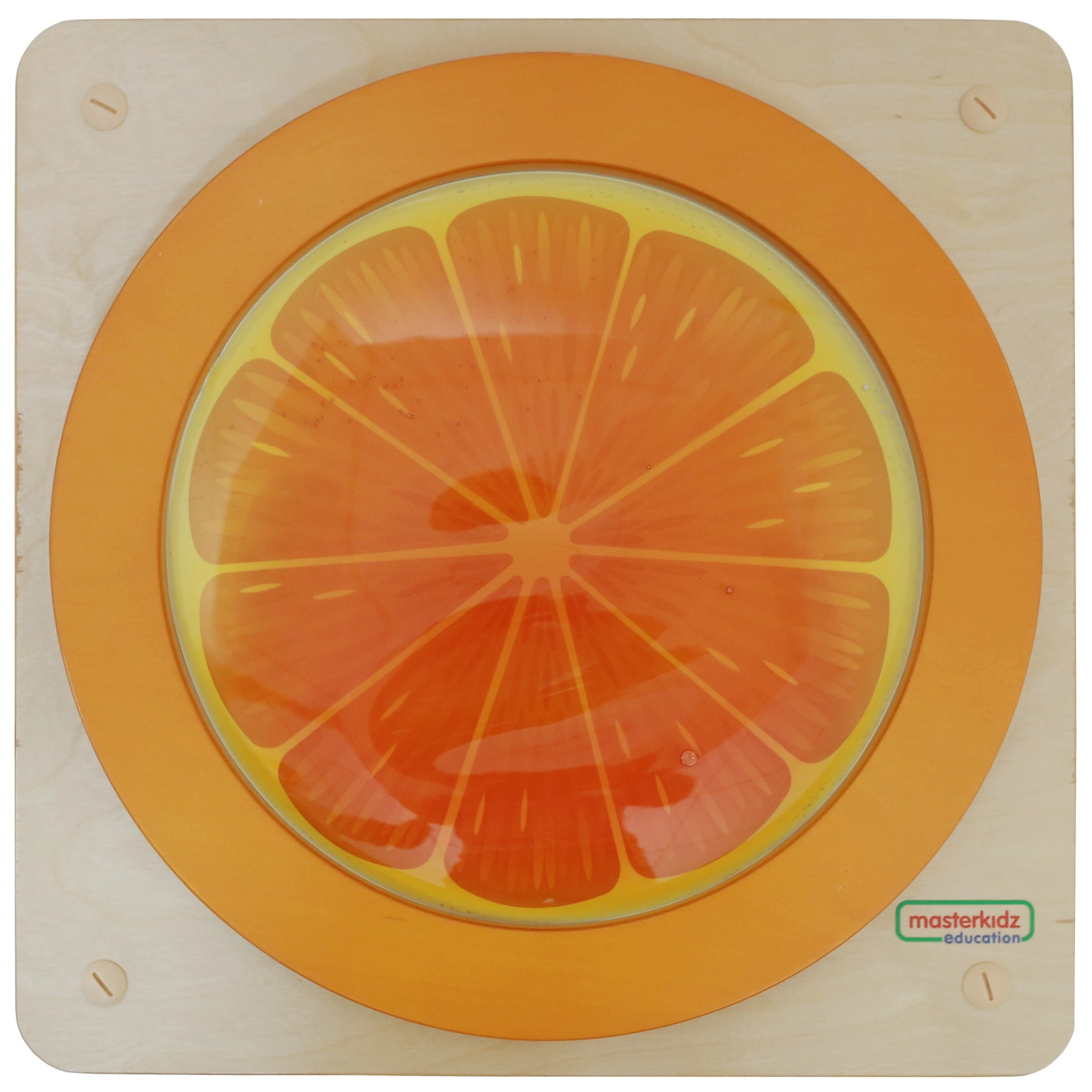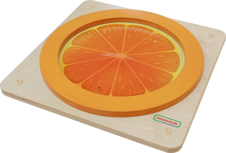 Ontdek het speelse zintuiglijke paneel van Masterkidz in de vorm van een sinaasappel, dat tactiel verkennen, fijne motoriek en concentratie stimuleert. Kinderen kunnen op de transparante koepel met oranje gel drukken, de vloeiende beweging van de vloeistof volgen en tot rust komen tijdens geconcentreerd spel. De stevige houten basis en de mogelijkheid tot wandmontage zorgen voor veilig en stabiel gebruik thuis, in de kleuterklas en in speelruimtes.